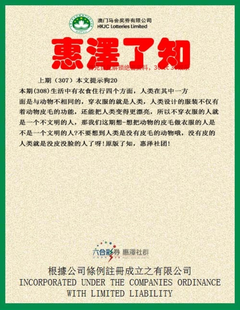 | 307期三头中特【2.3.4头】开:狗20准 |