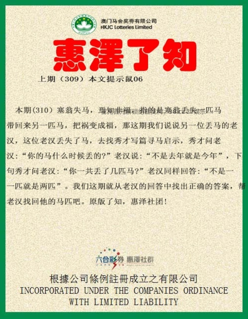 | 310期⑤肖 | 鸡羊蛇马虎 | 开:虎16中 |